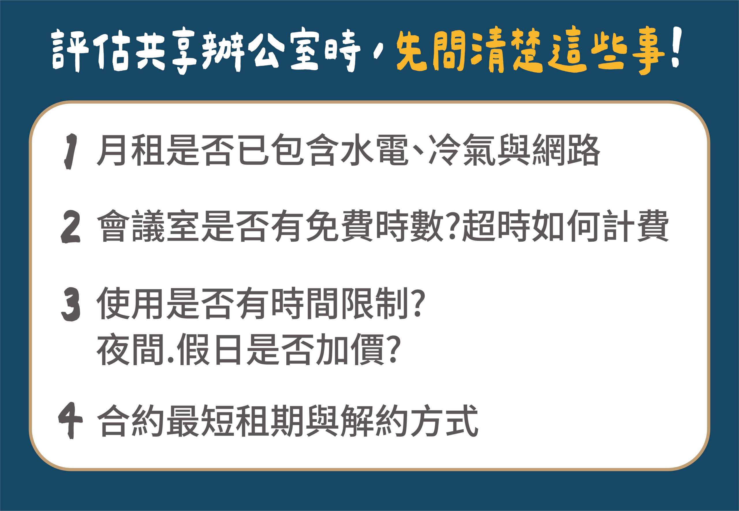 除了租金與會議室之外,還有一些容易被忽略的項目,
