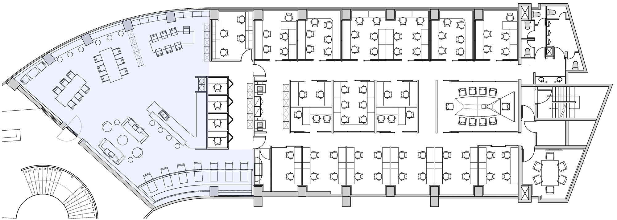 60坪的公共大廳內可自由選擇喜歡的位置辦公